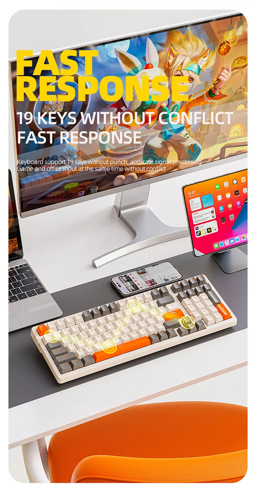 【Practical 96% Unique Layout】Compared with TKL mechanical keyboard or 68-key keyboard, the 100-key achieves maximum compactness while maintaining the practicality of the keyboard. Featuring independent arrow keys and number keys operation area, leaving more desktop space, making the perfect combination of compactness and functionality, ideal for gamers, typists and office.